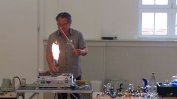 Heiß her ging es am Dienstag 13.06.2017 in der historischen Turnhalle unserer Schule. Herr Sommer, gelernter Glasbläser, begeisterte unsere Schülerinnen und Schüler sowie die Kolleginnen und Kollegen mit seinem doch sehr außergewöhnlichen Beruf. Mit einem riesigen Bunsenbrenner brachte der Glasbläser aus Coburg das Glas zum Glühen. Dann wurde gepustet und gepustet. Gebannt wie eh und je beobachteten die Kinder, wie aus dem Glasstab langsam eine Christbaumkugel entstand. Doch das waren nicht die einzigen Werke, deren Entstehung wir bestaunen durften. Eine bunte kunstvolle Vase, eine Christbaum-Spitze und ein Trick-Schwan entstanden ebenfalls in der Buka-Halle. Wir bedanken uns recht herzlich bei Herrn Sommer und freuen uns schon auf seinen nächsten Besuch.