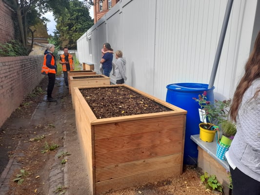 Große Freude machte sich breit, als die neuen Hochbeete ankamen.